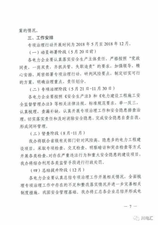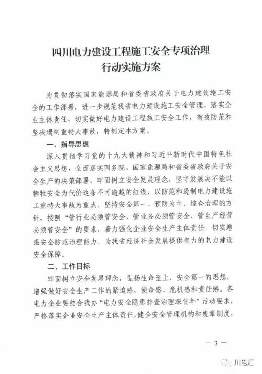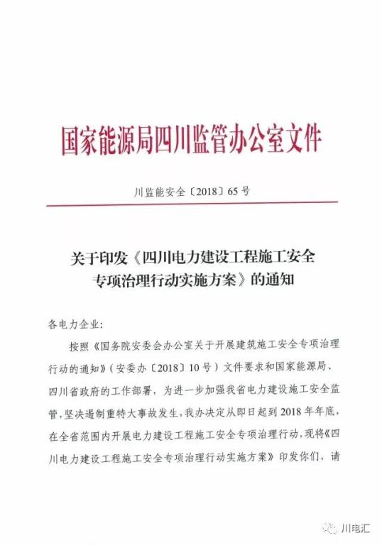 安全生產】關于印發《四川電力建設工程施工安全專項治理行動實施方案》的通知