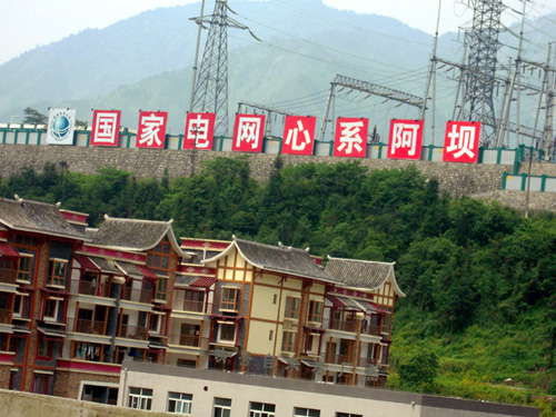 國家電網心系阿壩,對災后重建投入了大量人力物力,圖為映秀110KV變電站。 ![]()